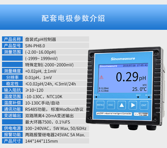 測(cè)量精度:±0.02pH