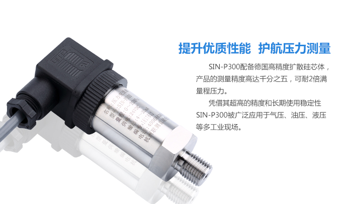 SIN-P300通用型壓力變送器德國進口硅芯片,精度高性能穩(wěn)定;SIN-P300型通用型壓力變送器采用擴散硅壓力芯體作為敏感元件,內(nèi)置處理電路將傳感器毫伏信號轉(zhuǎn)換成標準電壓﹑電流信號輸出,可直接與計算機、控制儀表﹑顯示儀表等相連。