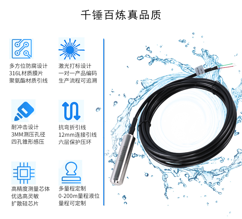 SIN-P261投入式液位變送器由高性能擴散硅壓阻式壓力傳感器作為測量元件,把與液位深度成正比的液體靜壓力準(zhǔn)確測量出來,并經(jīng)過信號調(diào)理電路轉(zhuǎn)換成標(biāo)準(zhǔn)(電流或電壓)信號輸出。